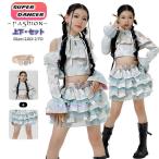 k-pop 衣装 キッズダンス衣装 セットアップ ヒップホップ キッズ へそ出し トップス 女の子 蝶柄 オフショルダー ケーキスカート 白 青 k-pop 衣装 韓国 アイド