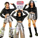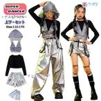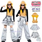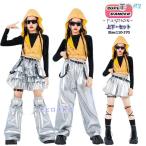 シルバー ロングパンツ k-pop 衣装 キッズダンス衣装 セットアップ ヒップホップ へそ出し トップス フード付き キラキラ 光沢 ダンス衣装 チアガール 短パンツ