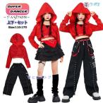 赤 デニムアウター キッズダンス衣装 セットアップ ヒップホップ へそ出し トップス 女の子 長袖 キャミソール 黒 赤 ロングパンツ カッコイイ 原宿 ストリート