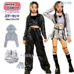 キッズ へそ出し トップス ダンス衣装 女の子 長袖 セットアップ かっこいい ジャケット ヒップホップ レザーパンツ 機能風 韓国 k-pop衣装 ワイドパンツ ジャズ