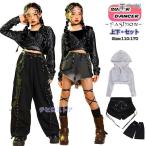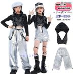 キッズ ダンス衣装 セットアップ へそ出し トップス 女の子 キラキラ 黒トップス シルバーパンツ かっこいい 韓国 k-pop衣装 ヒップホップ ジャズダンス ワイド