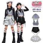 キッズ へそ出し トップス ダンス衣装 女の子 シルバー セットアップ かっこいい 短パンツ スカート 韓国 k-pop衣装 ヒップホップ ジャズダンス メタリック キラ