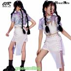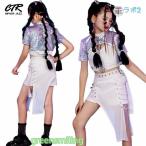 キッズダンス衣装 セットアップ 白 へそ出し スカート タンクトップ 長袖 シャツ ヒップホップ k-pop 衣装 Y2K 韓国 トップス キッズ ダンス衣装 子供 演出服 女