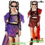 キッズダンス衣装 セットアップ へそ出し スパンコール キラキラ 紫 赤 ヒップホップ 韓国 k-pop 衣装 チアガール ジャズダンス スカート 女の子 子供 キッズ ダ