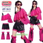 ピンク キッズ ダンス衣装 セットアップ へそ出し k-pop 衣装 トップス スパンコール キラキラ 衣装 韓国 ヒップホップ 女の子 カッコイイ キッズダンス