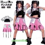 キッズ ダンス衣装 セットアップ へそ出し スカート シルバー 上下セット k-pop衣装 半袖 ピンク トップス ヒップホップ 子供 演出服 キッズダンス衣装 ジャズダ