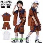 キッズ ダンス衣装 セットアップ シャツ ズボン ブラウン ヒップホップ 韓国 k-pop 衣装 高校生 ゆったり 男の子 女の子 ジュニア ジャズダンス パンツ 子供ダン