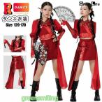 レッド キッズダンス衣装 セットアップ へそ出し トップス スカート 赤 ジャズダンス 女の子 ヒップホップ k-pop 衣装 韓国 かっこいい キッズ ダンス衣装 HIPHO