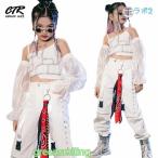 キッズダンス衣装 セットアップ へそ出し 白 トップス パンツ k-pop 衣装 ヒップホップ 韓国 チアガール ジャズダンス 長パンツ タンクトップ 女の子 子供 かっ
