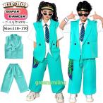 キッズ ダンス衣装 セットアップ ベスト パンツ 長ズボン グリーン スーツ ヒップホップ k-pop 衣装 男の子 女の子 韓国 子供 キッズダンス衣装 演出服 社交ダン
