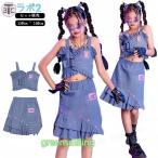 キッズダンス衣装 セットアップ へそ出し ショート丈 トップス タンクトップ 半パンツ 韓国 k-pop キッズダンス 衣装 ヒップホップ k-pop 衣装 デニム ショート