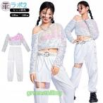 キッズダンス衣装 セットアップ キラキラ へそ出し 白 スパンコール k-pop 衣装 ヒップホップ シルバー 韓国 子供 キッズ ダンス 衣装 ホワイト 演出服 可愛い