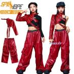 ダンス衣装 レザー ベスト 上下セット 風 黒 団体服 応援団 発表会 韓国 Y2K キッズ セットアップ ヒップホップ 子供服 衣装 男の子 女の子 トップス パ