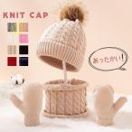 ニット帽 子供 ニットキャップ 女児 男児 帽子 キッズ キャップ 3点セット 手袋 マフラー 可愛い 女の子 男の子 ポンポン付き 保温