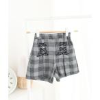 パンツ リボン編み上げモチーフ チェック柄 キュロット キッズ 子供服 女の子