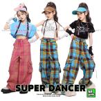 キッズヒップホップダンス衣装 半袖シャツ+サルエルパンツ上下2点セットアップ チェック柄パンツ 女の子男の子ダンス衣装 jazzガールズ ダンスウェア ジャズヒップホップダンス衣装