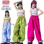4色 ボーダー柄 カーゴパンツ へそ出し 子供服 キッズ ダンス衣装 チアガール ジャズ セットアップ ヒップホップ 女の子 トップス ロングパンツ 上下セット HIPH