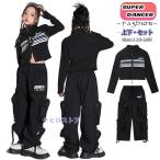 ボーダー柄 ブラック 子供服 キッズ ダンス衣装 女の子 長袖 トップス パンツ セットアップ ヒップホップ トレーナー チアガール ジャズ キッズファッション hip