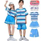 キッズダンス 子供服 ボーダー柄 2点セット 夏用 子供ダンス 女の子 男の子 半袖Tシャツ ショートパンツ スカート hiphop ヒップホップ ダンス衣装 子供服 ガー