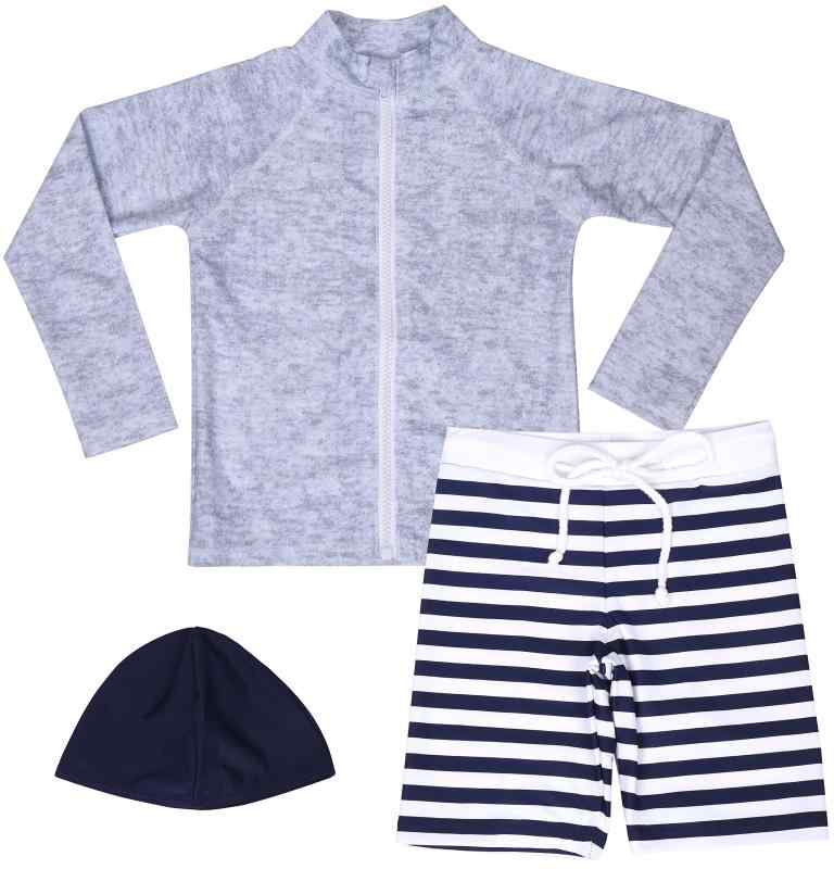 水着 男の子 3点セット キッズ ボーダー柄パンツ 長袖ラッシュガード 紫外線カット UPF50+ 80〜140サイズ(90)