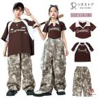 キッズダンス 子供 ヒップホップ ブラウン tシャツ 迷彩柄パンツ キッズダンス衣装 男の子 女の子 カーゴパンツ セットアップ 半袖 子供ダンス 原宿系 ストリー