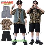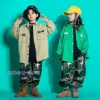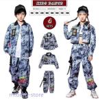ダンス衣装キッズ ヒップホップ HIPHOP シャツ 迷彩柄 セットアップ シャツ パンツ へそ出し男の子 女の子 練習着 発表会