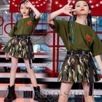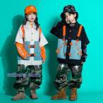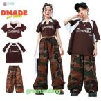 キッズダンス tシャツ ビッグシルエット ヒップホップ 半袖 迷彩パンツ セットアップ 韓国 HIPHOP ダンス衣装 女の子 男の子 発表会 文化祭 演出服