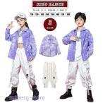 キッズ ダンス 衣装 セットアップ パープル 迷彩 タイダイ シャツ ジャケット 白トレーナー ショート丈 へそ出し タンク トップス サルエルパンツ 白 パンツ 韓