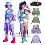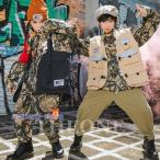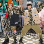 キッズ ダンス衣装 ヒップホップ HIPHOP セットアップ ベスト 迷彩柄 チアガール トップス パンツ ズボン 子供 男の子 女の子 ステージ衣装