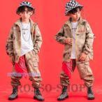 キッズダンス衣装 セットアップ ヒップホップ ファッション 男の子 ガールズ 迷彩柄 カモフラージュ ミリタリー 派手 K-POP 韓国 カーキ