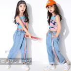 ダンス衣装 セットアップ ヒップホップ衣装 迷彩タンクトップ キッズ ジャズダンス衣装 ノースリーブ HIPHOP ダンス衣装 ステージ衣装 デニムパンツ 迷彩柄