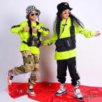 迷彩パンツ ジャズダンス キッズ ダンス衣装 ヒップホップ 上下 セットアップ 子供 サルエルパンツ 蛍光トップス HIPHOP 長袖 シャツ ステージ衣装 練習着