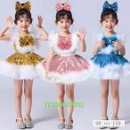 キッズ ダンス 衣装 女の子 スパンコール ワンピース キッズ ガールズ ワンピース 可愛い 髪飾り付き 2点セット チアガール ワンピース 女の子 チアダンス 衣装