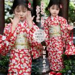 華やか 赤 花柄 女の子 浴衣 セット 作り帯 巾着 下駄 髪飾り キッズ 夏着物 和服 涼しい ピンク 桜柄 緑 紫陽花 可愛い レッド 子供用 オシャレ 着物 お出かけ