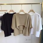 Tシャツ Vネック 五分袖 レディース トップス 後丈長 ベーシックカラー ドロップショルダー