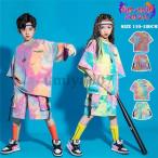 爆買 キッズダンス衣装 セットアップ タイダイ染 トップス ショートパンツ 2点セット 女の子 男の子 ダンスtシャツ 半袖 KPOP ダンス衣装 子供服 ヒップホップ