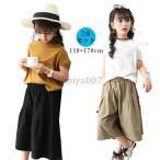 子供服 セットアップ 夏 女の子 キッズ 韓国子供服 上下セット 2点セット 無地 トップス 半袖 ボトムス ガウチョパンツ 可愛い おしゃれ 通学着 通園着 お出かけ