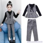セットアップ キッズ フォーマルスーツ 子供服 子供スーツ 上下セット 女の子 チェック柄 Tシャツ パンツスーツ 3点セット