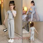 子供服 セットアップ キッズ 女の子 夏 上下セット Tシャツ 半袖 ガウチョパンツ 無地 スポーツウェア 子供ジャージ ジュニア おしゃれ 可愛い カジュアル 新品