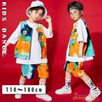 キッズダンス 衣装 ヒップホップ 子供服 セットアップ 白Tシャツ タイダイ柄ベスト パンツ ガールズ ステージ衣装 団体服 練習着 舞台衣装