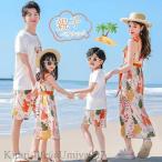 夏新作ペアルック 親子 コーデ 家族お揃い 親子ペア ペアルック 親子コーデ ペアtシャツ セットアップ カップル ママ パパ キッズ 子供服 男の子 女の子 花柄