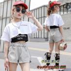3点セット ショート丈Tシャツ タンクトップ ショートパンツ 女の子 へそ出し ステージ衣装 子供 ダンス衣装 練習着キッズダンス衣装 ヒップホップ HIPHOP