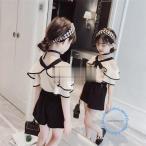 キッズ ワンピース チュニック 半袖 韓国子供服 女の子 ワンピ フレア 肩出し シフォンTシャツ+パンツ2点セット 子どもドレス 春 夏 110-160cm