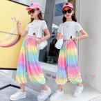 ダンス衣装 ヒップホップ キッズ 女の子 セットアップ tシャツ 虹色パンツ ジャズダンス ガールズ チア カッコイイ 涼しい 演出服 応援団 練習着 発表会 運動会