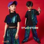 キッズ ダンス衣装 スパンコール キラキラ ヒップホップ Tシャツベストパンツ HIPHOP 子供 男の子 女の子 ステージ衣装 演出服 練習着