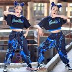 ダンス衣装 ヒップホップ 女の子 黒青Tシャツ インナー タイダイ柄パンツ へそ出し キッズ ガールズ 女の子 セットアップ 派手 K-POP 韓国 ステージ衣装 応援