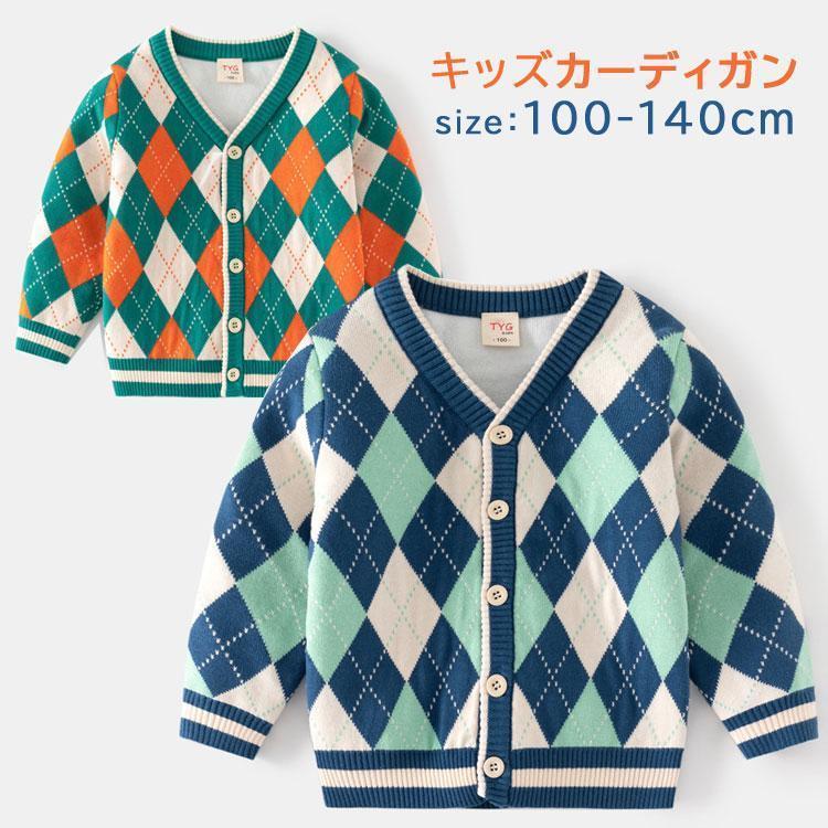 【期間限定10%OFF】キッズ カーディガン 男の子 セーター アーガイル柄 トップス 羽織り 長袖 スクールカーディガン ニットセーター 子供服 幼稚園 パーカ 子ども服 春秋 通園