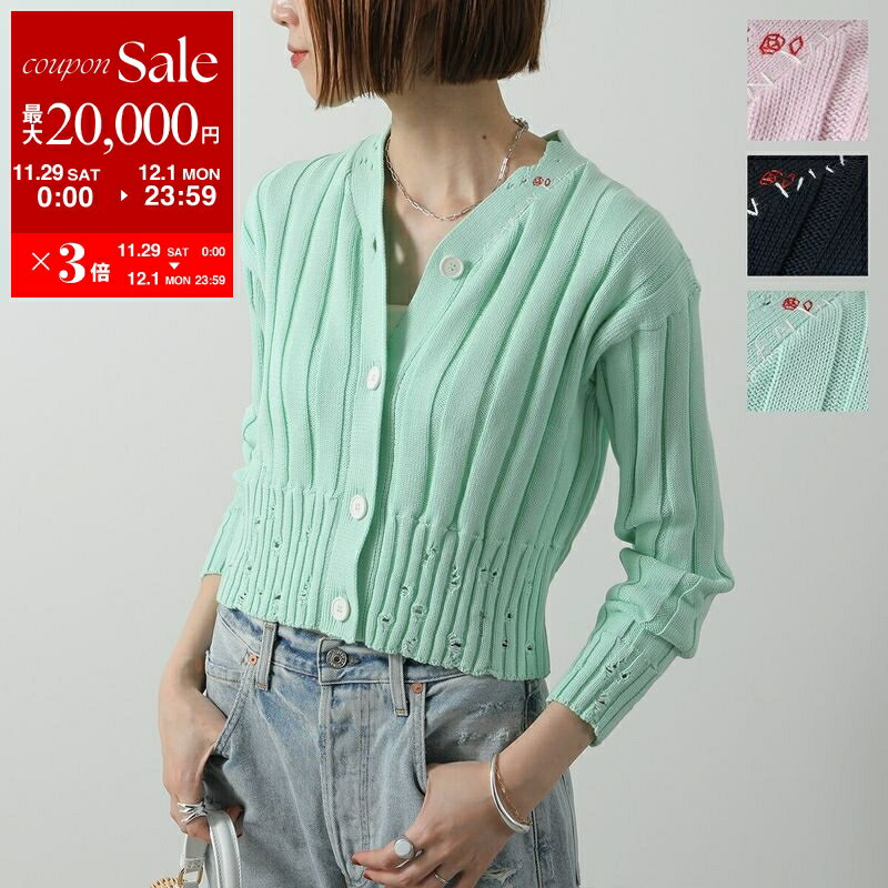 MARNI KIDS マルニ キッズ カーディガン M01342 M00UD レディース ガールズ ニット コットン 長袖 Vネック ダメージ加工 ロゴ 刺繍 カラー3色