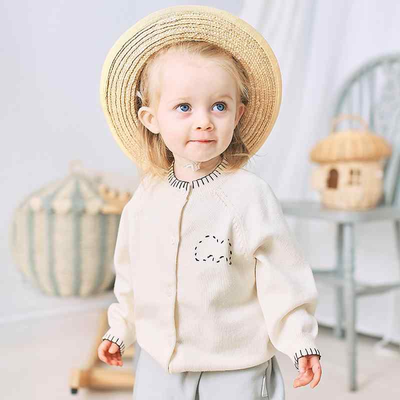キッズ カーディガン 長袖 ニット セーター 男の子 女の子 子供服 ウール 刺繍 80 90 100 110 120 130cm 歳 秋冬
