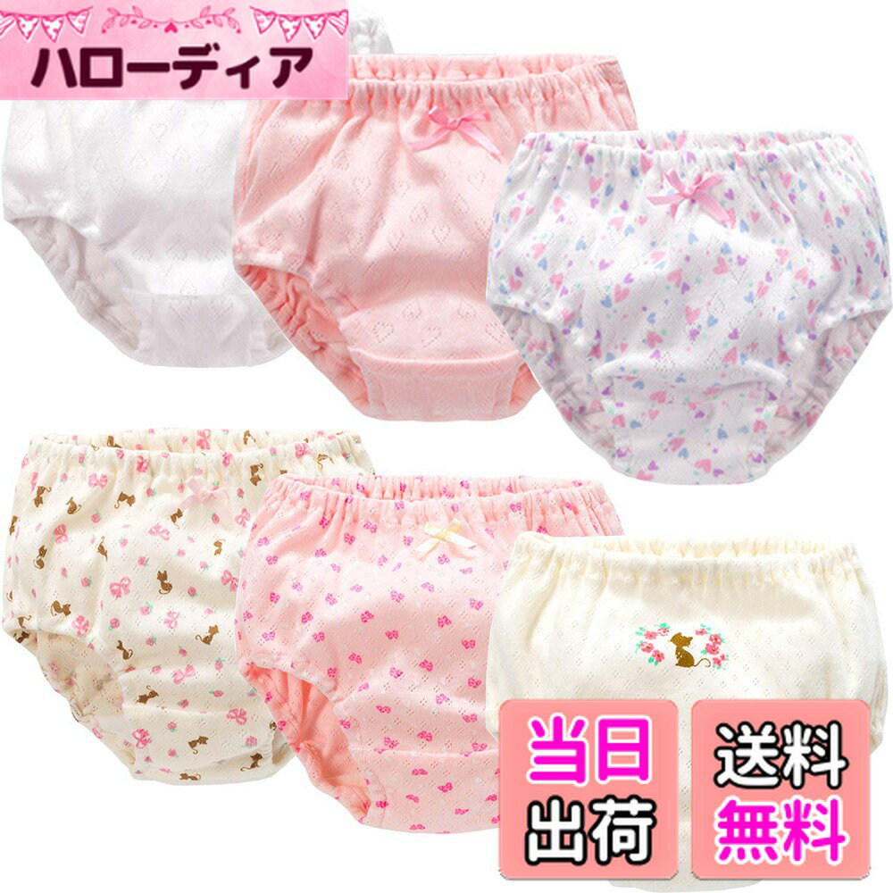 【送料無料】女児 ショーツ 6枚セット 綿100% 通気 下着 キッズ ベビー 女児キッズショーツ 無蛍光の100% 肌着 柔らかい 吸湿 快適 子供 幼稚園 水玉 風船 子犬 90 100 110 120 130 【OU.OU】 色:ねこ花、サイズ:100